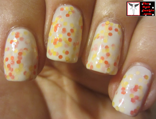 I loved this mani before I added the art. Candy Corn is the perfect seasonal polish. Everytime I attempt free hand nail art, I'm reminded why I don't do it very often: IT'S HARD! Hard to hold your hand steady, hard to get it perfect. This mani looks okay, not horrible, but I prefer the easier more uniform look of stamping. :)