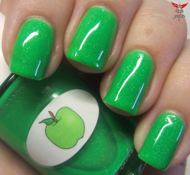 Apple is a juicy neon green jelly polish. It's loaded with holographic shimmer and can be worn as a