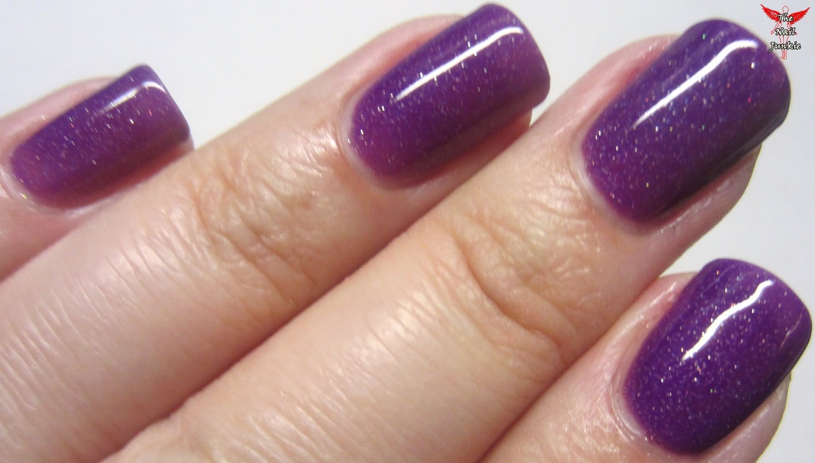 Grape is a deep neon purple jelly polish. It's loaded with holographic shimmer and can be worn as a